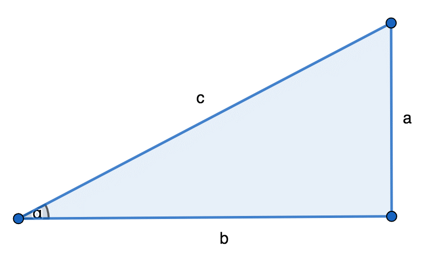 Тангенсом какого-либо острого угла \(\alpha (tg \alpha)\) называют величину, выражающую отношение противоположного катета (а) к прилегающему катету (b) в треугольнике с углом 90°, то есть: \(tg \alpha = \frac{a}{b}\)