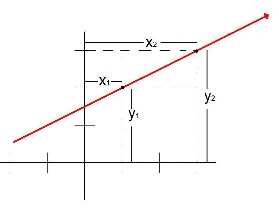 Зная тип прямой, можно записать ее уравнение. Для этого надо определить координаты одной из точек на графике и угловой коэффициент — отношение изменения координаты по оси y к изменению координаты по оси x. Он равен тангенсу угла между прямой и положительным направлением оси x. С учетом этого определяется величина сдвига прямой по оси y.