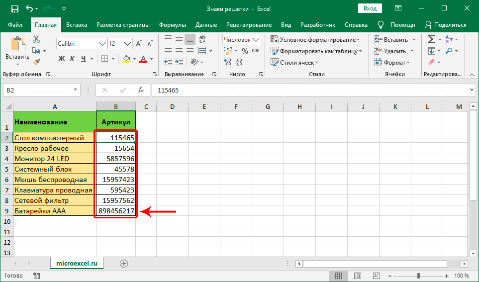 Если числовому значению применен формат числа, отличный от формата текста, Excel будет отображать его как решетки. Чтобы исправить это, вы можете изменить формат ячейки на текстовый, чтобы числовое значение отображалось как текст.