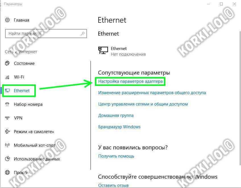 - Зайдите в «Центр управления сетями и общим доступом» — «Изменение параметров адаптера».
