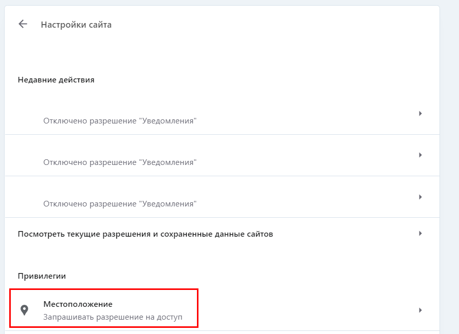 После требуется выбрать пункт «Месторасположение», найти который довольно просто (идет сразу после второго подзаголовка).