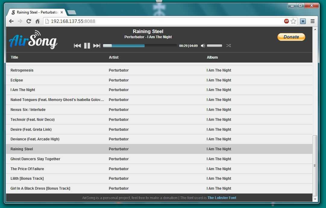 Для потоковой передачи через Wi-Fi вы должны установить соответствующее приложение на Android, которое будет передавать всю нашу музыку с вашего смартфона и создавать сервер. Затем на компьютере введите адрес сервера в браузер, и игрок отобразит список всех песен, хранящихся на смартфоне. Мы полностью контролируем выбор песен, громкости, плейлистов и всего воспроизведения из браузера на компьютере.