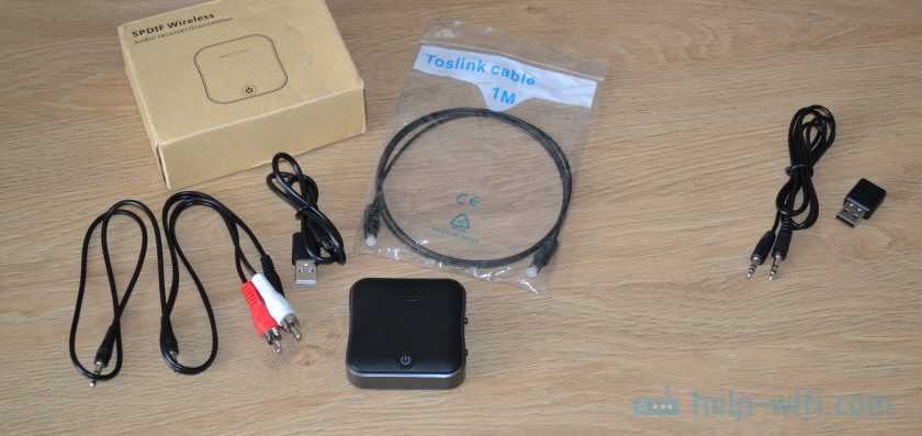 Этот универсальный беспроводной адаптер можно использовать со Смарт ТВ и компьютером в качестве transmitter. Также устройство способно выполнять функцию ресивера. Девайс сделан в форме коробочки, питается от встроенного аккумулятора. Поддерживается 3 способа передачи информации mini-Jack, RCA, оптоволокно, соответственно в комплекте поставляется три кабеля. Беспроводное соединение осуществляется по протоколу Bluetooth 2.1. Цена этого блютуз адаптер к телевизору порядка 1.5 тыс. рублей.