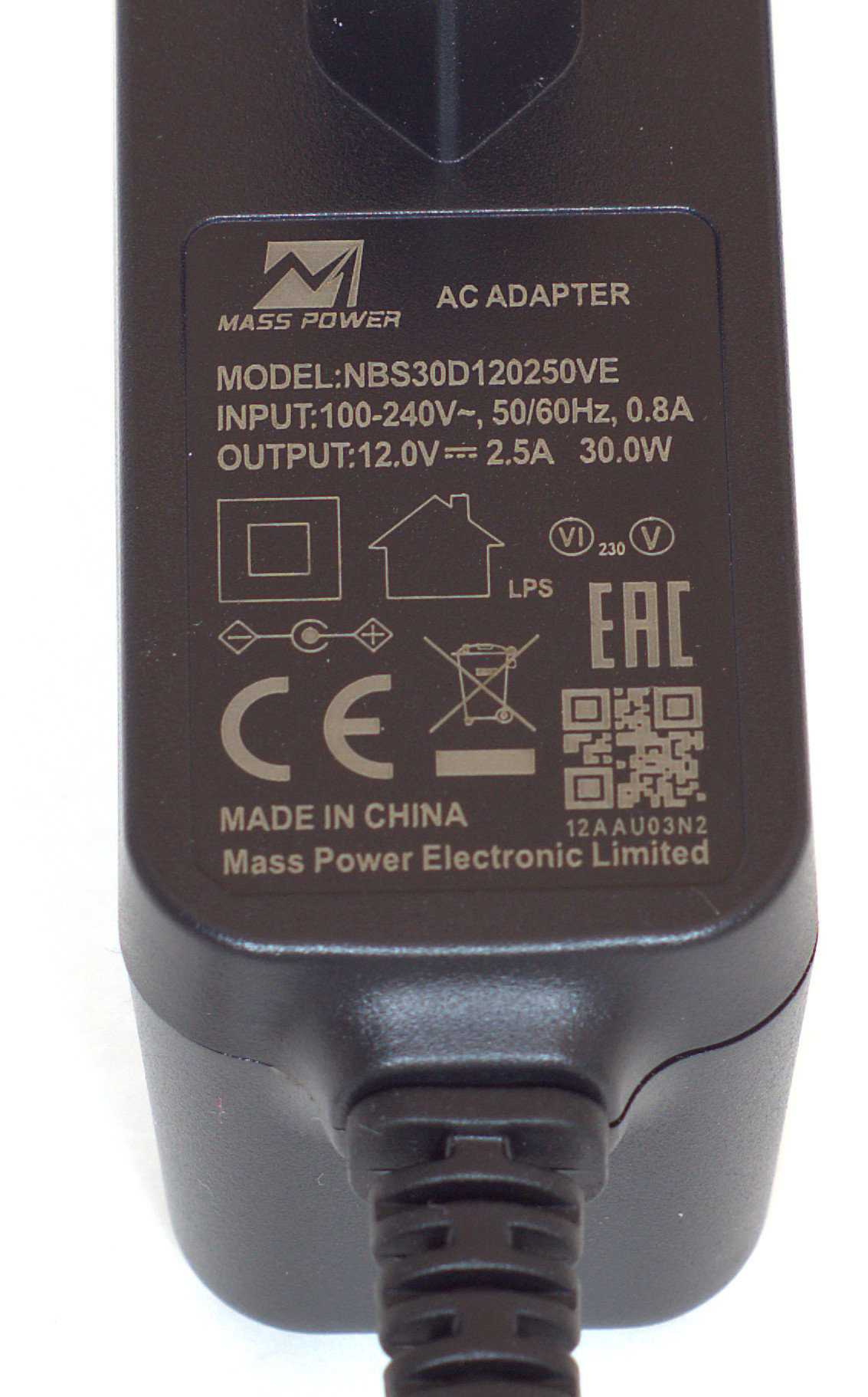 Отдельно стоит сказать о блоке питания. Он «мощный», имеет выходное напряжение 12 В, ток до 2.5 А (мощность 30 Вт).