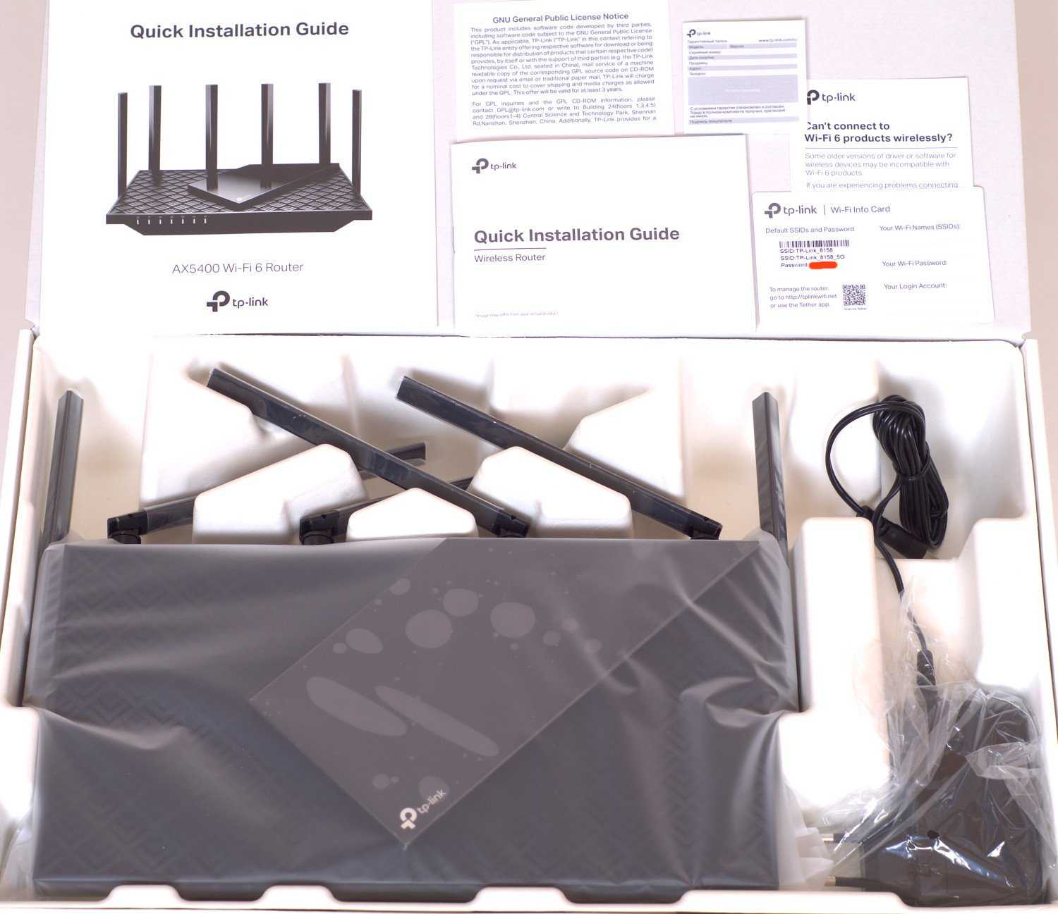 В плане комплектации к роутеру трудно что-то предъявлять. Она минимальная, однако включает большой набор информационных листов, сам роутер, блок питания и …