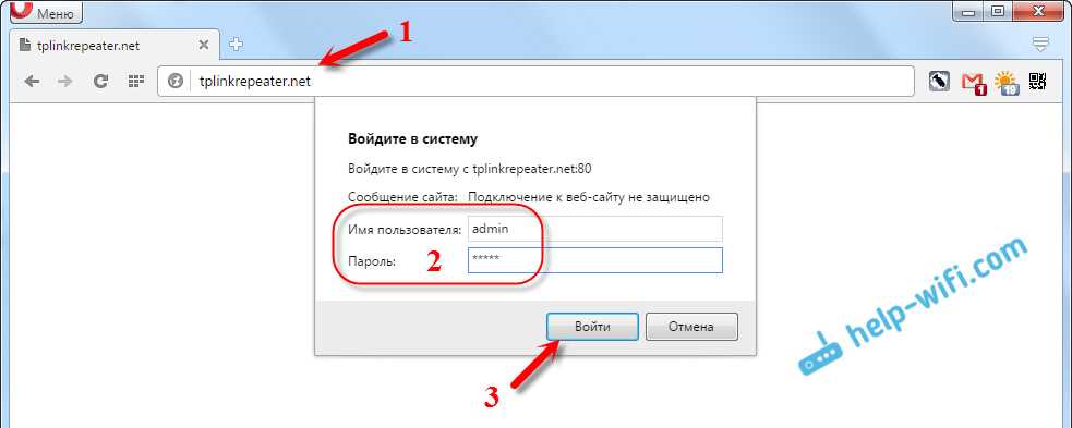 - для этого наберите в поисковой строке tplinkrepeater.net и в указанные графы введите два раза admin;