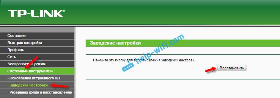 Или, зайдите в web-интерфейс, перейдите на вкладку «Системные инструменты» – «Заводские настройки», и нажмите на кнопку «Восстановить».
