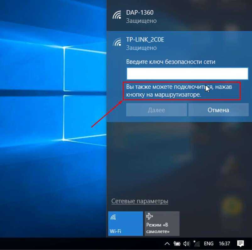 Windows также позволяет использовать эту технологию: после нажатия кнопки на маршрутизаторе или запуске поиска сети Wi-Fi через трей в правом нижнем углу появится опция Также можно подключиться, нажав на кнопку маршрутизатора.