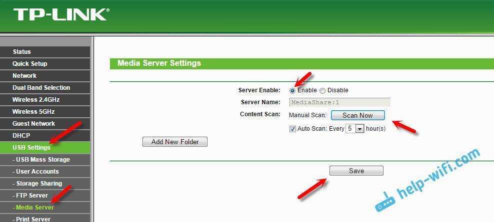 Медиа-сервер (DLNA) для телевизора на роутере TP-LINK