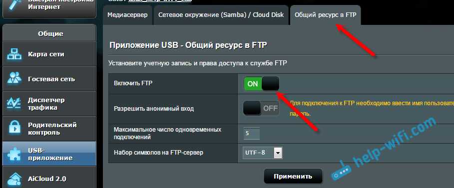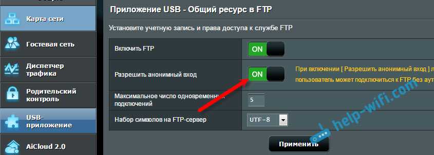 - Настройка FTP сервера на роутере ASUS