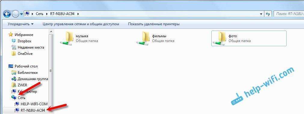 В случае с роутером ASUS, на вкладке сеть, у меня сразу появилось сетевое устройство, открыв которое, мы получаем доступ к флешке. Возможно, понадобится указать имя пользователя и пароль. Это те же данные, которые вы указываете при входе в настройки роутера.
