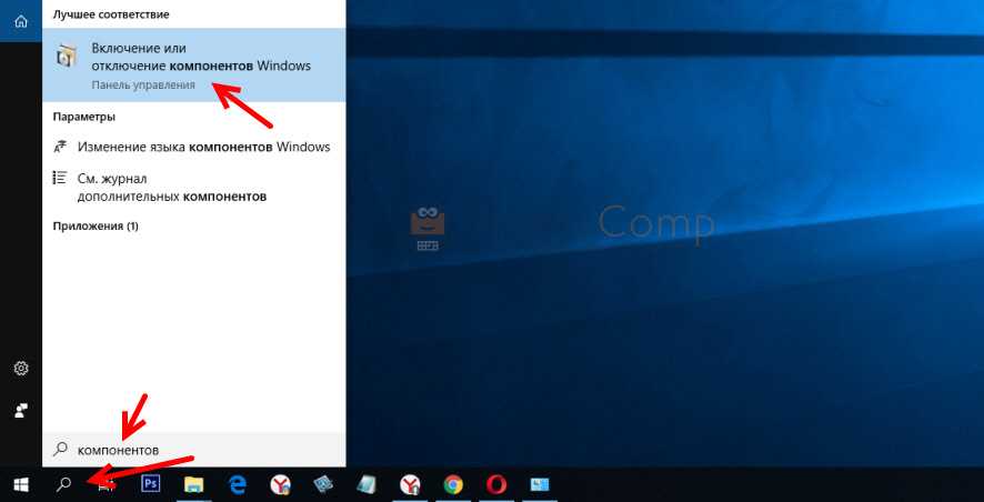 Откройте Пуск (или нажмите на кнопку поиска) и введите «компонентов». Откройте «Включение или отключение компонентов Windows». Или можно открыть это окно через «Панель управления» – «Программы и компоненты» и слева переходим в «Включение или отключение компонентов Windows».
