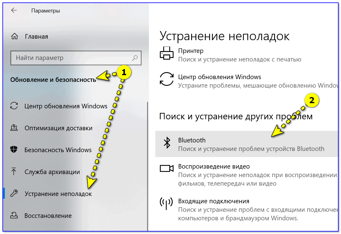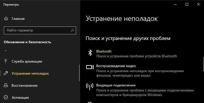 Откройте “Параметры” > “Обновления и безопасность” > “Устранение неполадок” > справа найдите Bluetooth и запустите.