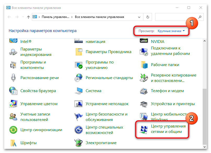 По завершению проверки следует перейти в “Сетевые подключения” Windows 10 используя при этом панель управления.
