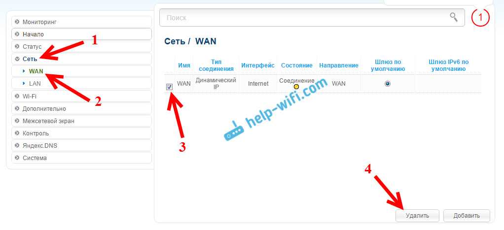 Дальше перейдите на вкладку Сеть — WAN. Выделите галочками все профили, которые там есть, и нажмите на кнопку Удалить.