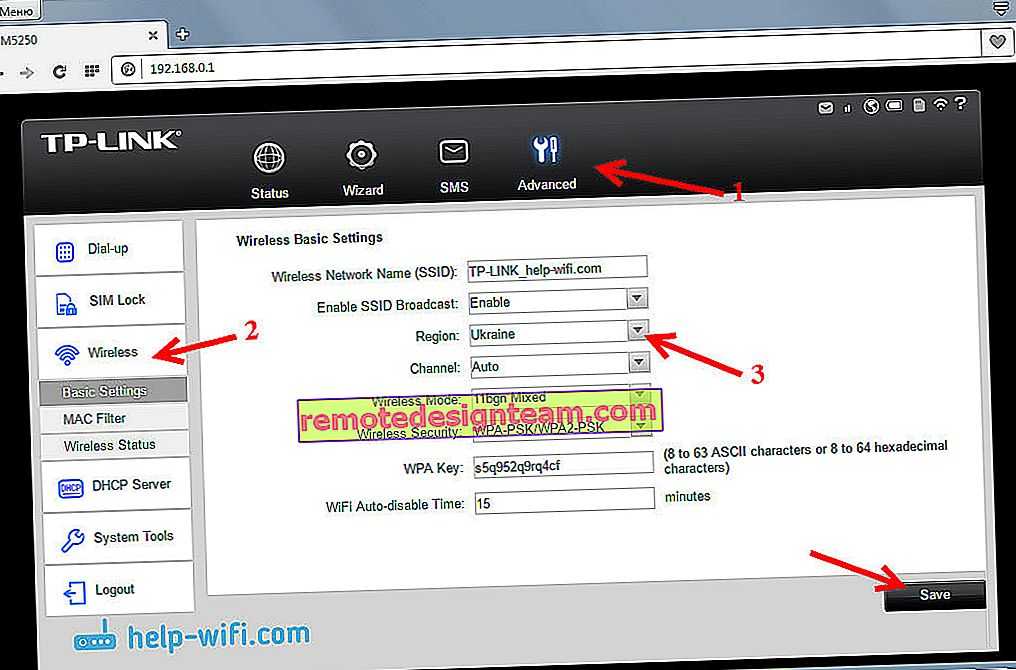 Давайте розглянемо найнеобхідніші. Крім тих налаштувань, які ми поставили вище, я радив би ще змінити регіон на вкладці «Wireless». На цій же вкладці ви надалі зможете змінювати ім’я бездротової мережі і пароль. А так же, там можна змінити канал Wi-Fi мережі, якщо знадобиться.