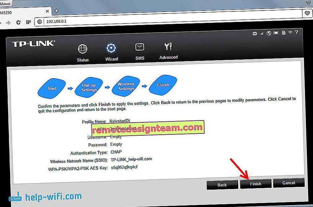 На останній сторінці майстра настройки, перевіряємо задані параметри, і натискаємо на кнопку «Finish».