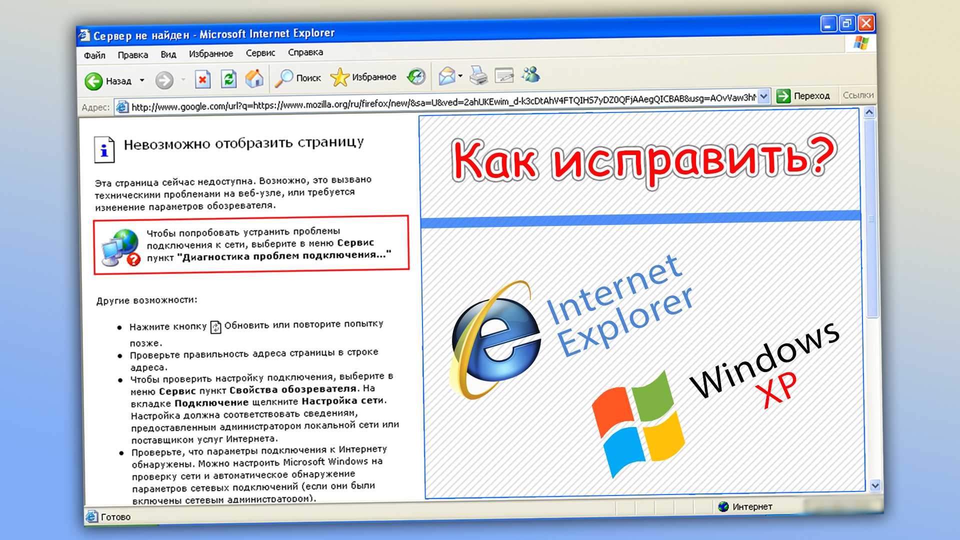 Невозможно отобразить страницу Internet Explorer на Windows XP — причины, решения