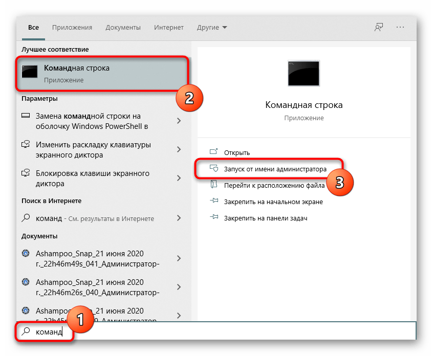 - Откройте «Пуск», отыщите там консоль и запустите ее от имени администратора.