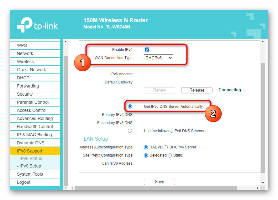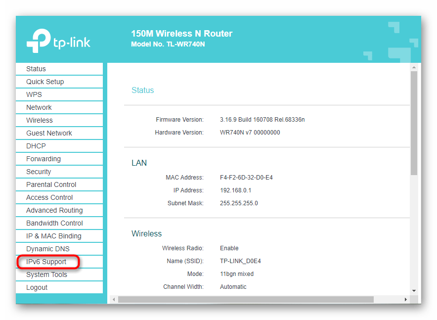 Многие современные роутеры по умолчанию поддерживают протокол IPv6 и обеспечивают доступ к сети, однако в некоторых моделях этот параметр нужно включать самостоятельно. Если по умолчанию поддержка отключена или это действие было осуществлено пользователем вручную, доступа к сети не будет, поэтому обязательно нужно проверить веб-интерфейс маршрутизатора.