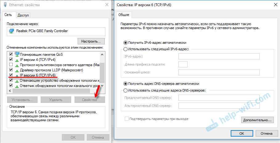 Выделите “IP версии 6 (TCP/IPv6)”. Нажмите кнопку “Свойства”.