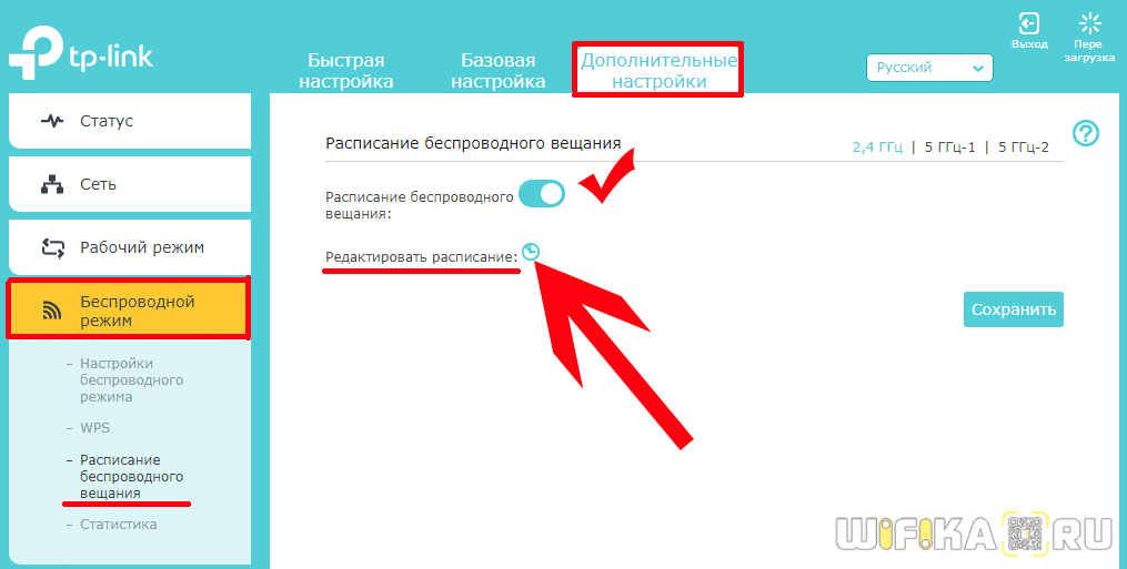 Как отключить по расписанию WiFi на роутере TP-Link?