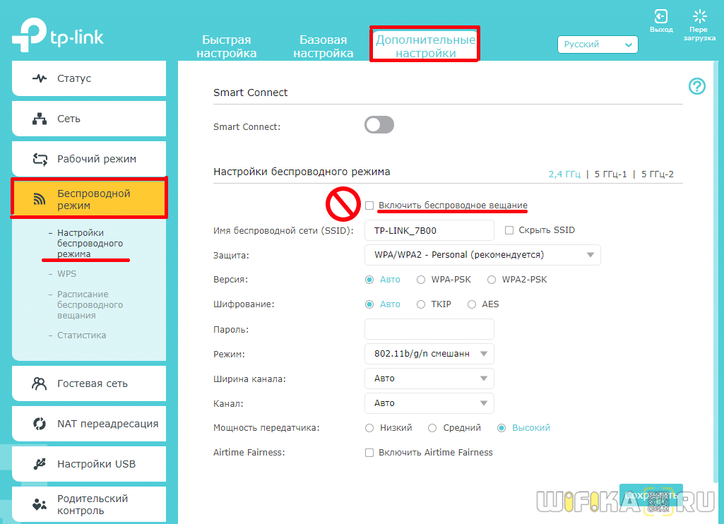 Отключение Wi-Fi сети на роутерах TP-LINK
