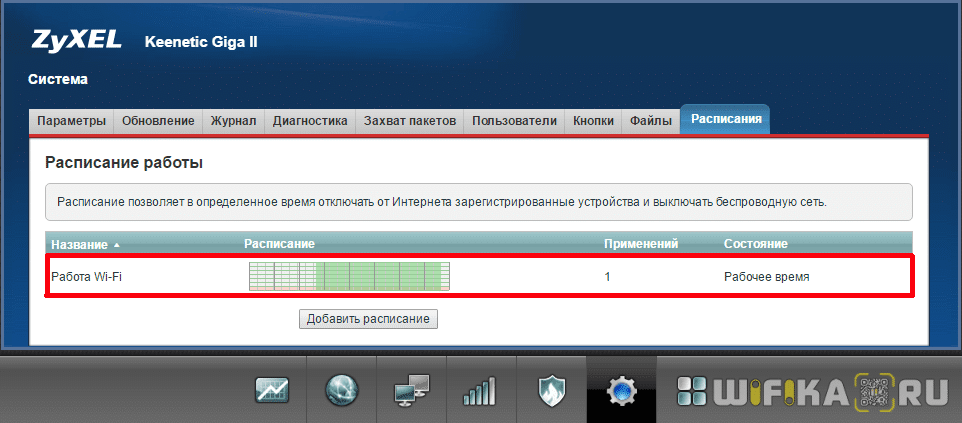 Отключение WiFi в маршрутизаторе дистанционно по расписанию на ночь