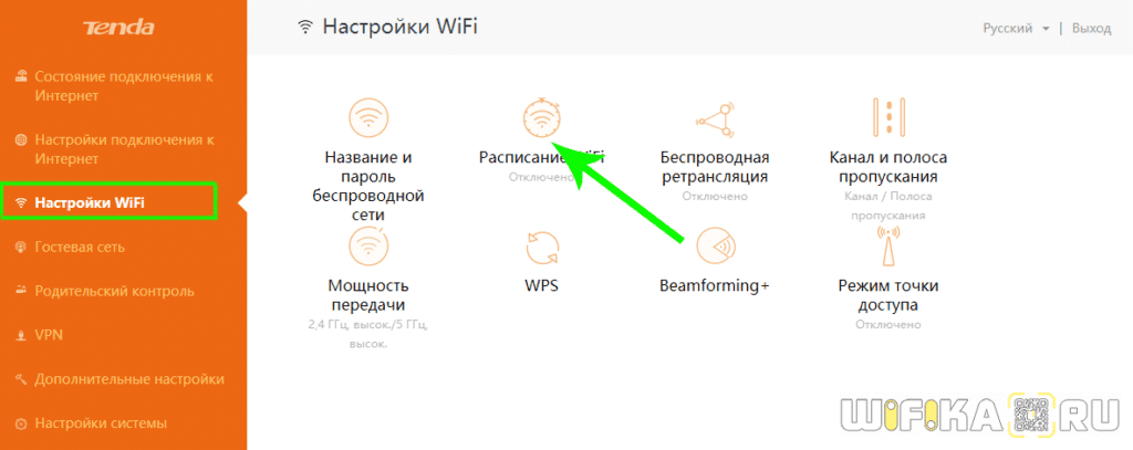 Как отключить WiFi на роутере Tenda?