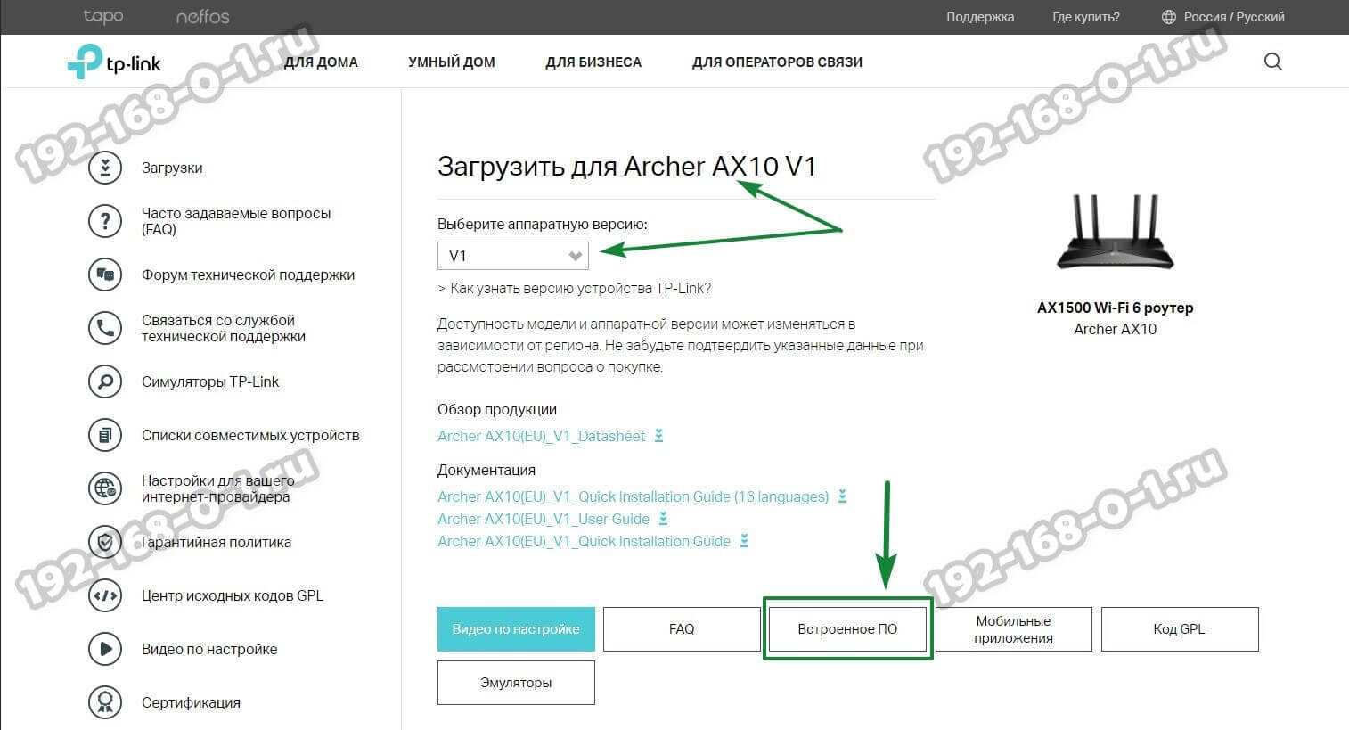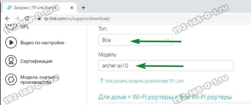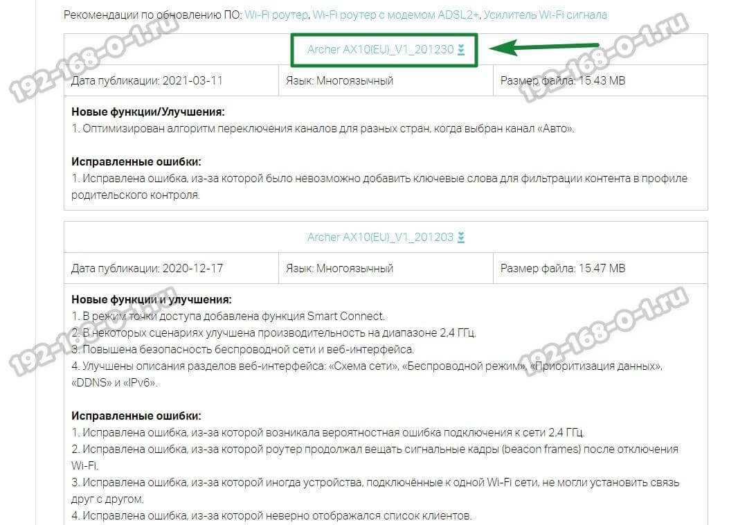 Ниже, в результатах поиска появилась ссылка на Archer AX10 — кликаем на неё и переходит на страницу загрузок для этого устройства: