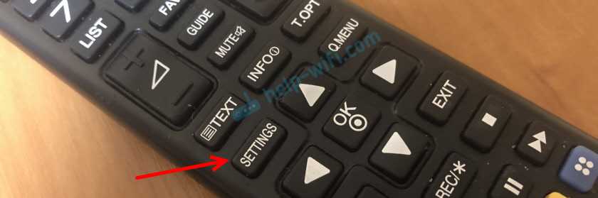1. Войдите в меню настроек. Если у вас телевизор с функцией Smart TV нажмите кнопку на пульте и выберите пункт «Настройки», если у вас телевизор без этой функции, то просто нажмите кнопку на пульте
