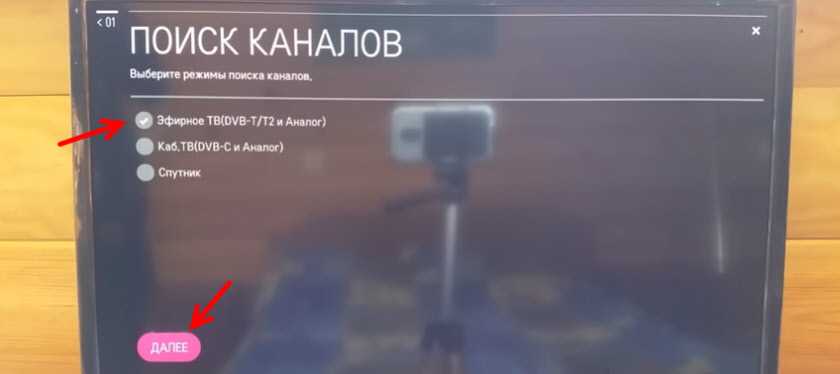 4) Поставить галочку рядом с пунктом ‘Эфирное ТВ’ и нажать ‘Далее’.