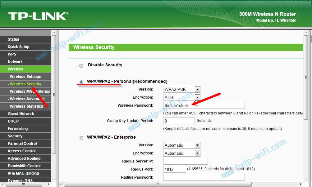Пароль нужно прописать в поле ‘Wireless Password’. Пароль должен быть минимум из 8 символов. Не забудьте нажать на кнопку ‘Save’.