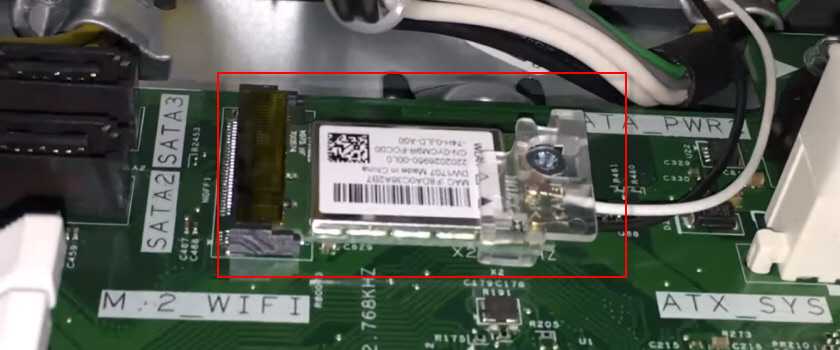 Размещен прямо на материнской плате. К нему подключены Wi-Fi антенны. При необходимости модуль можно заменить на более производительный и современный.