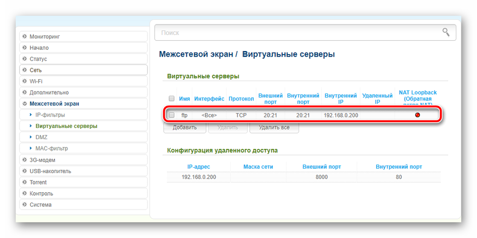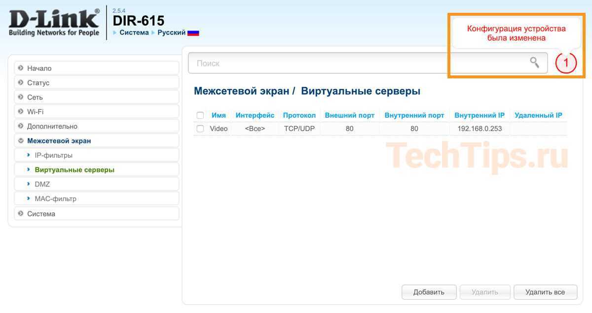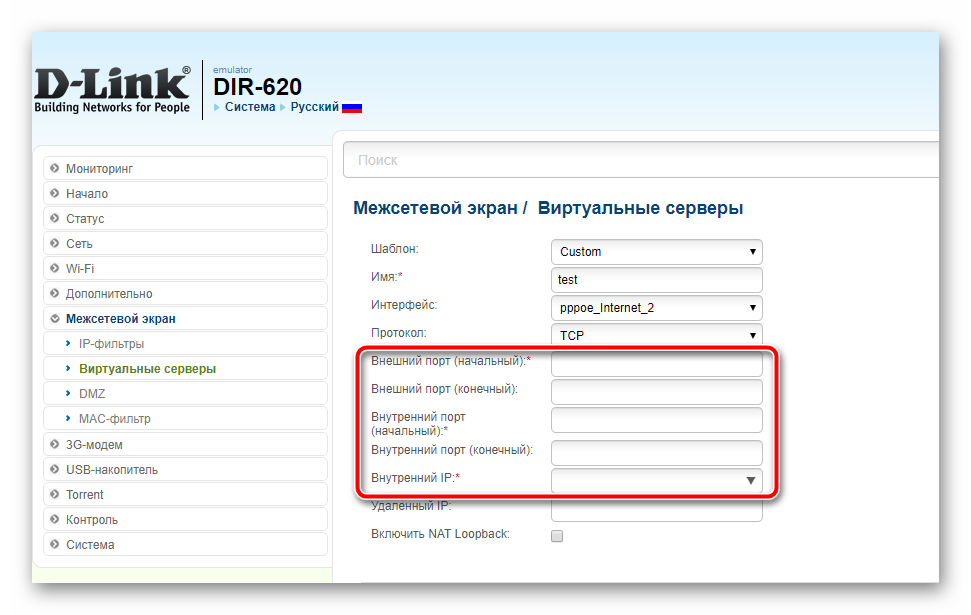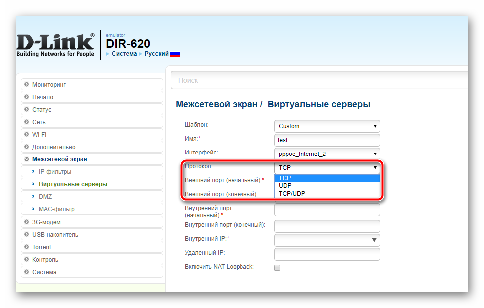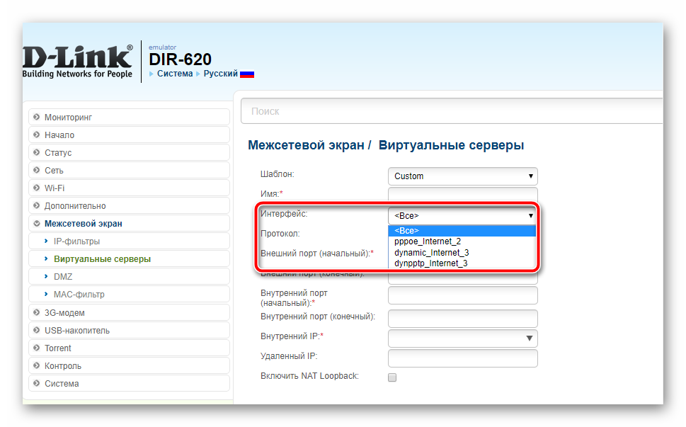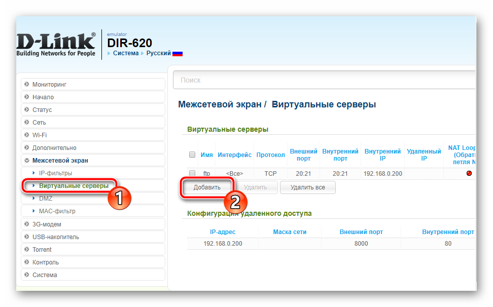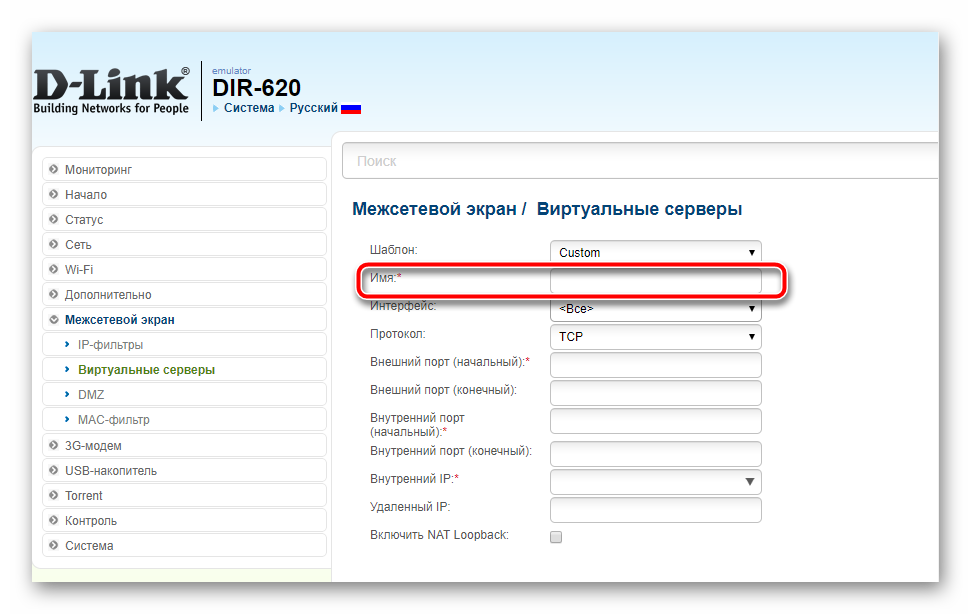 Для проброса портов в DIR-620 используется функция Виртуальные серверы.