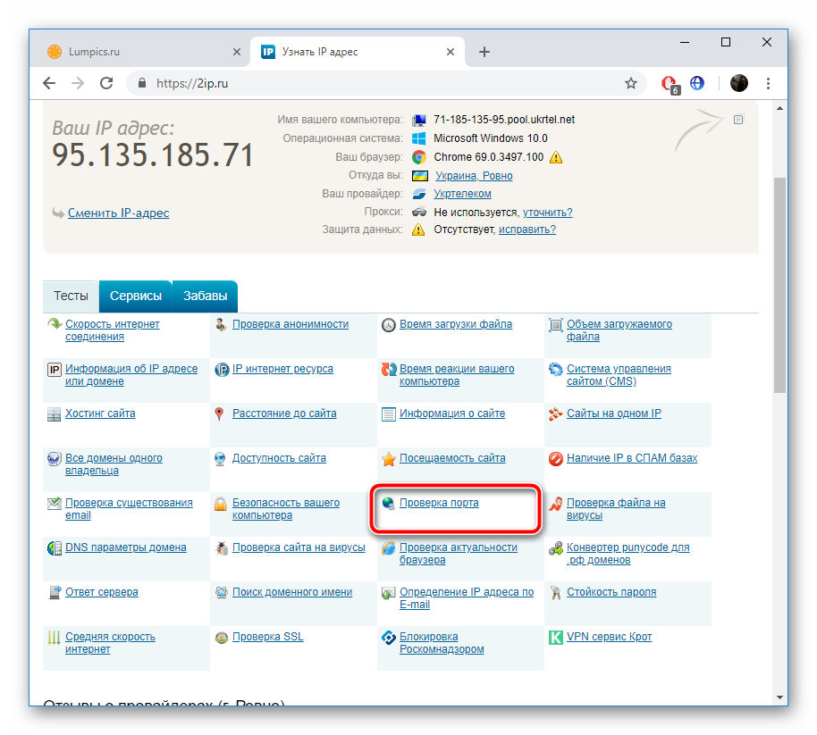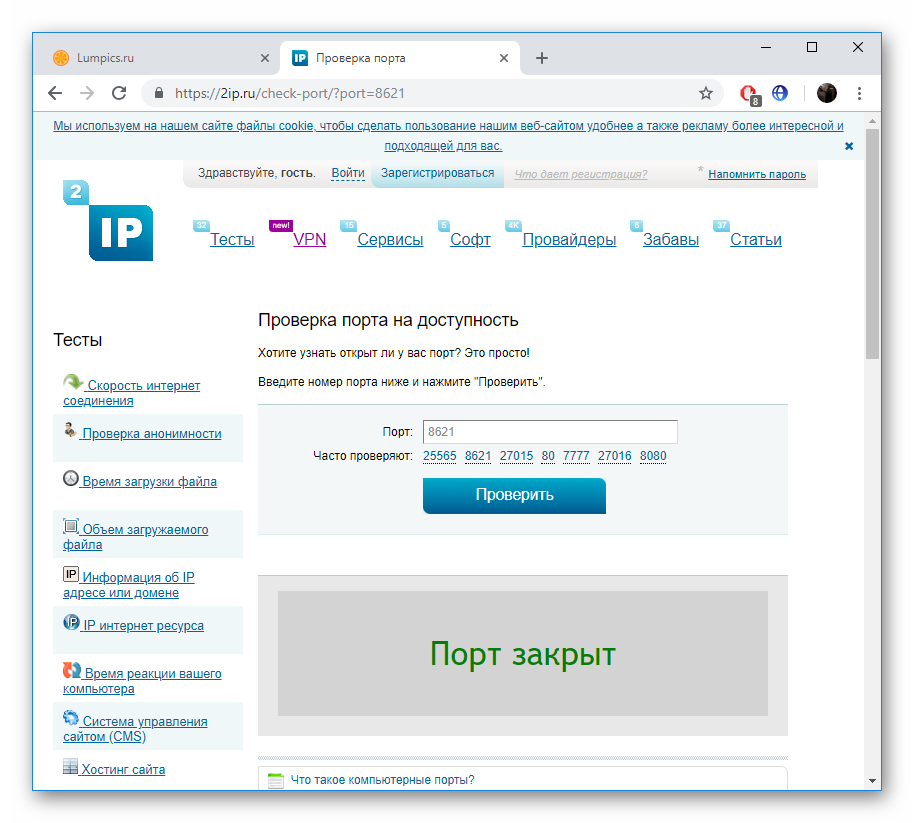 Существует множество сервисов, позволяющих определить, какие порты у вас открыты и закрыты. Если вы не уверены, получилось ли успешно справиться с поставленной задачей, советуем воспользоваться сайтом 2IP и проверить это: