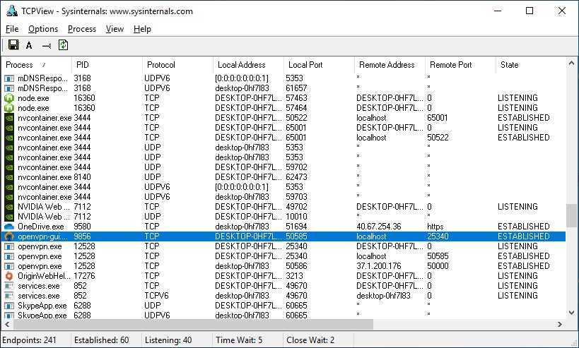 Утилита называется TCPView. Загрузите архив, распакуйте и установите ПО на ПК. Откройте и из списка выберите нужную программу. Скопируйте ячейку столбца «Remote Port». Позже информация с нее понадобится.