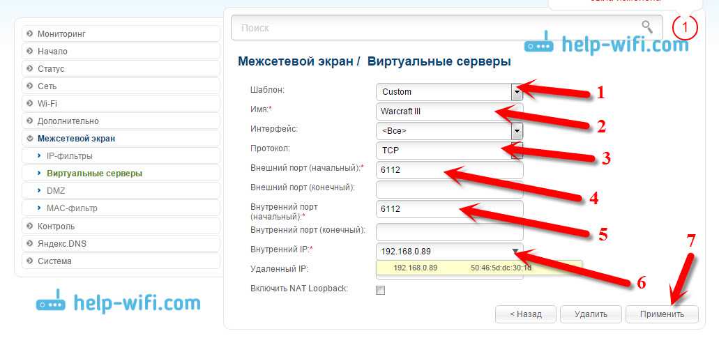 - «Внутренний IP». Цифровой маркер хоста во внутренней сети, на который будет перенаправлять поток данных.