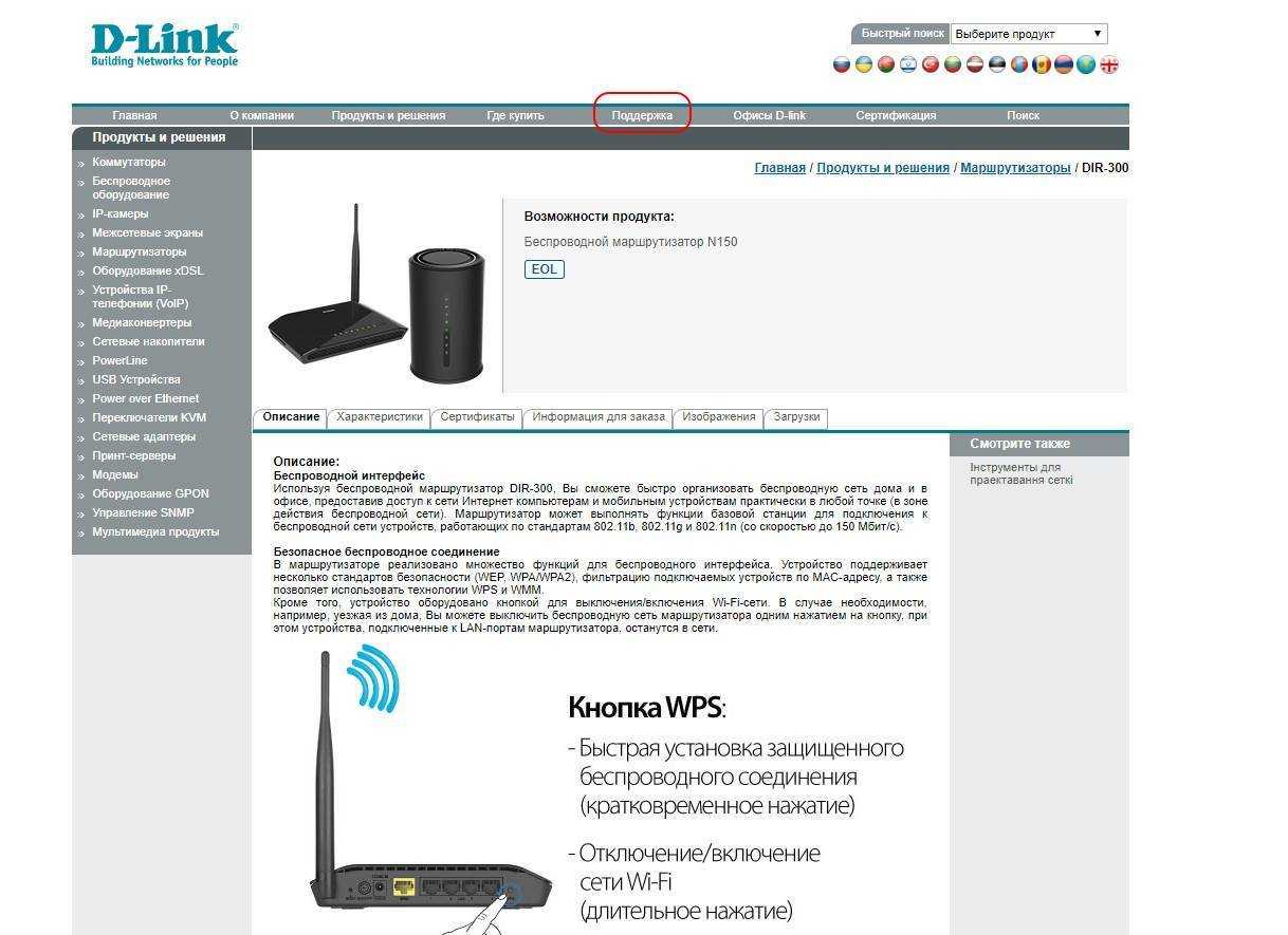 Посетив официальный портал производителя, на котором доступна данная информация (кнопка «Поддержка» в меню навигации).