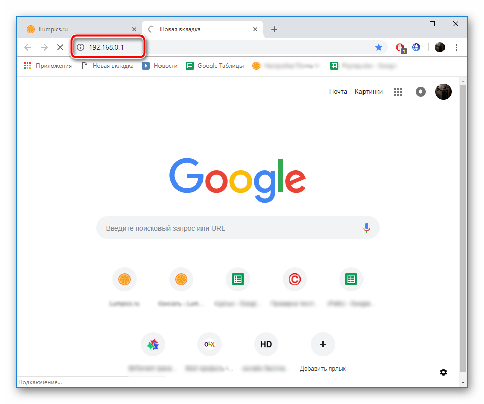Вход в настройки роутера