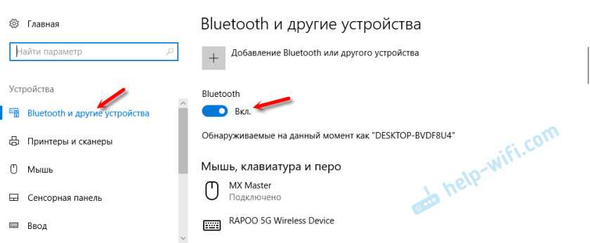 Отдельно рассмотрим процесс подключения через радио интерфейс (USB-адаптер) и отдельно через Bluetooth на примере ноутбука с Windows 10. Там есть отличия. Я имею введу при подключении по Bluetooth.