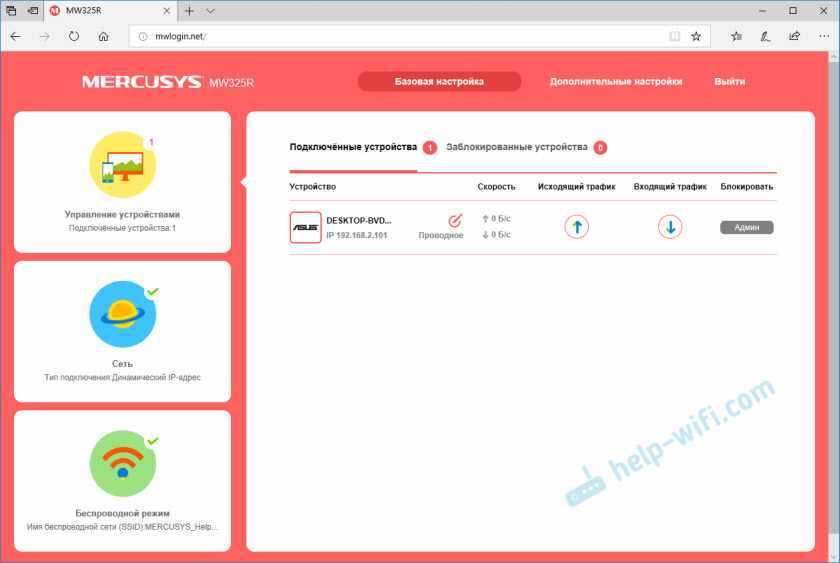 3 На главной странице веб-интерфейса можно посмотреть список подключенных устройств. При необходимости заблокировать отдельные устройства, или ограничить для них скорость. Там же можно сменить настройки интернета и Wi-Fi сети.