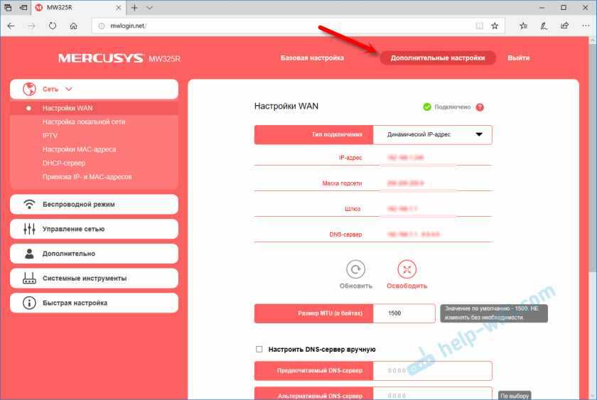 4 Все параметры находятся в разделе ‘Дополнительные параметры’. Например, на вкладке ‘Сеть’ – ‘Настройки WAN’ можно найти расширенные настройки подключения к интернету.