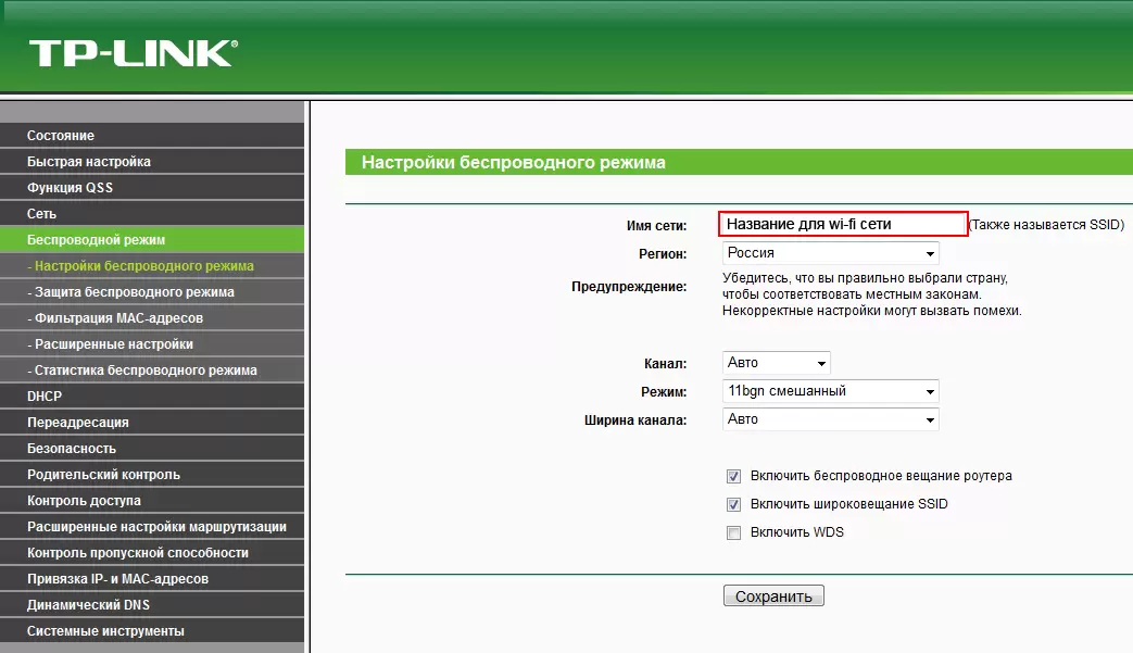 - Имя сети (SSID). Пропишите его латинскими буквами;