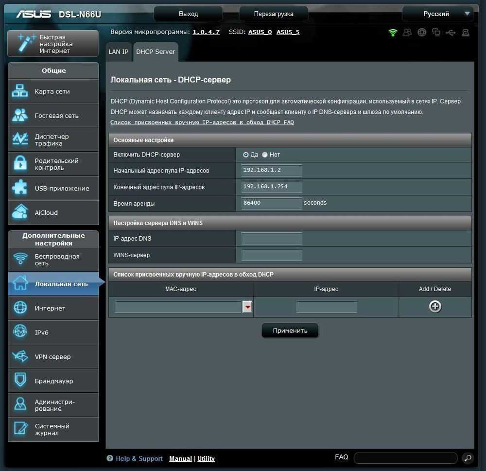 Параметр DHCP может располагаться в разделе «Локальная сеть», «Настройки сети», «Настройки локальной сети» и т.п.