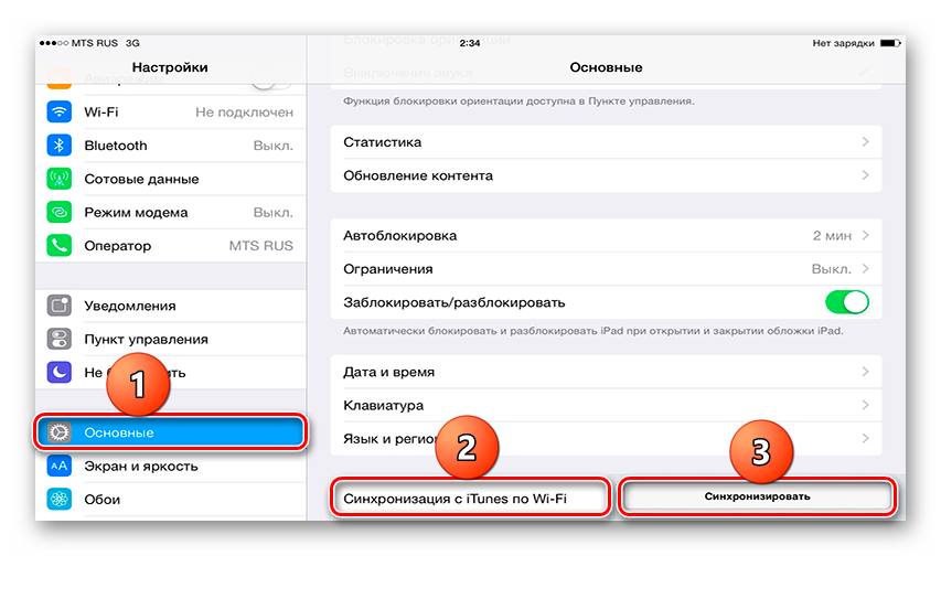Перейдите в раздел «Основные» – «Синхронизация с iTunes по Wi-Fi» – «Синхронизировать».