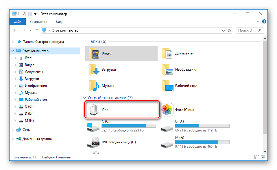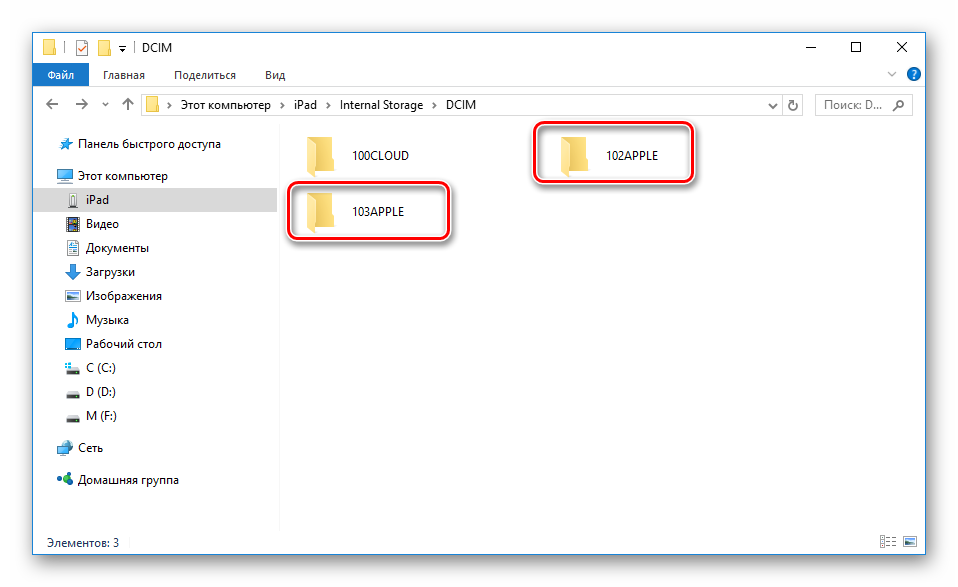 Просматривать файлы, а именно фото и видео, на iPad можно и не используя iTunes. Для этого нам понадобится лишь подключенное устройство и знание папки, в которую нужно перейти. Однако в этом случае редактировать и удалять файлы пользователь не сможет.