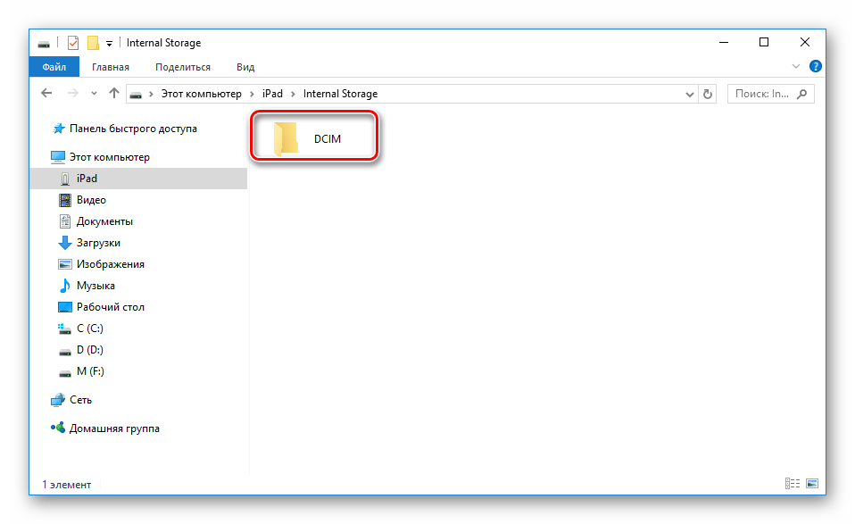 Перейдите в папку «Internal Storage», а затем в «DCIM». Если она не отображается, разблокируйте iPad.