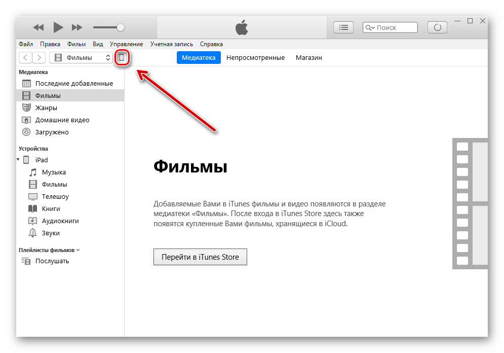 - Подключите планшет к компьютеру через USB. Это нужно сделать один раз, впоследствии в этом не будет необходимости. Откройте программу iTunes и нажмите на значок подключенного устройства.