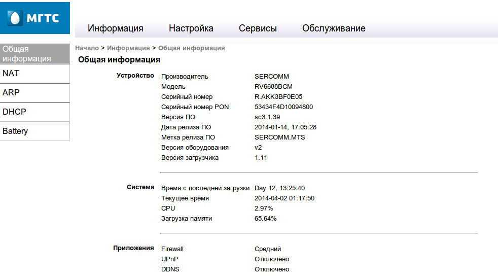 В адресной строке вводится IP интерфейса настройки : 192.168.1.254. Логин и пароль по умолчанию admin/admin, но если устройство прошито или настраивалось сотрудниками МГТС, то возможен вариант mgts/mtsoao. Тип подключения выбирать не нужно — он заложен в прошивке роутера.